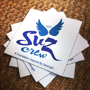 Suz Crew flexible magnets are 5" in size and suitable for indoor or outdoor use. Display your support on the car, refrigerator, or anywhere else you can find a magnetic surface.
